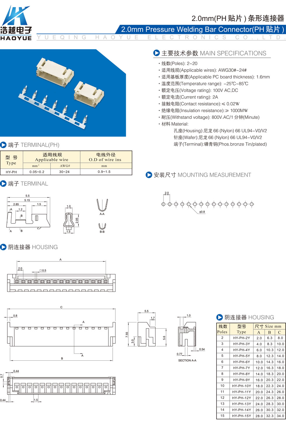 2.0mm条形连接器(PH)