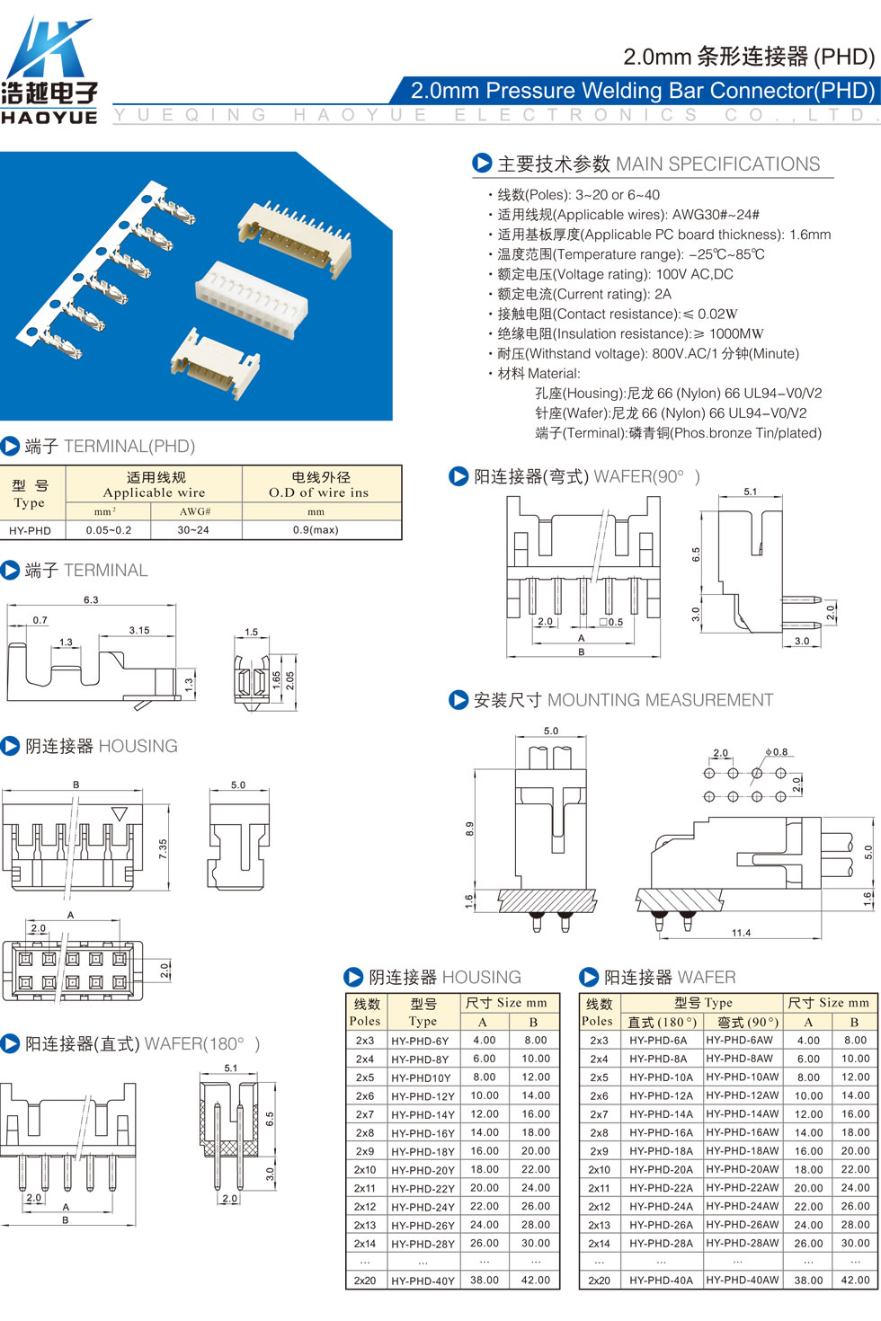 2.0mm条形连接器(PHD)