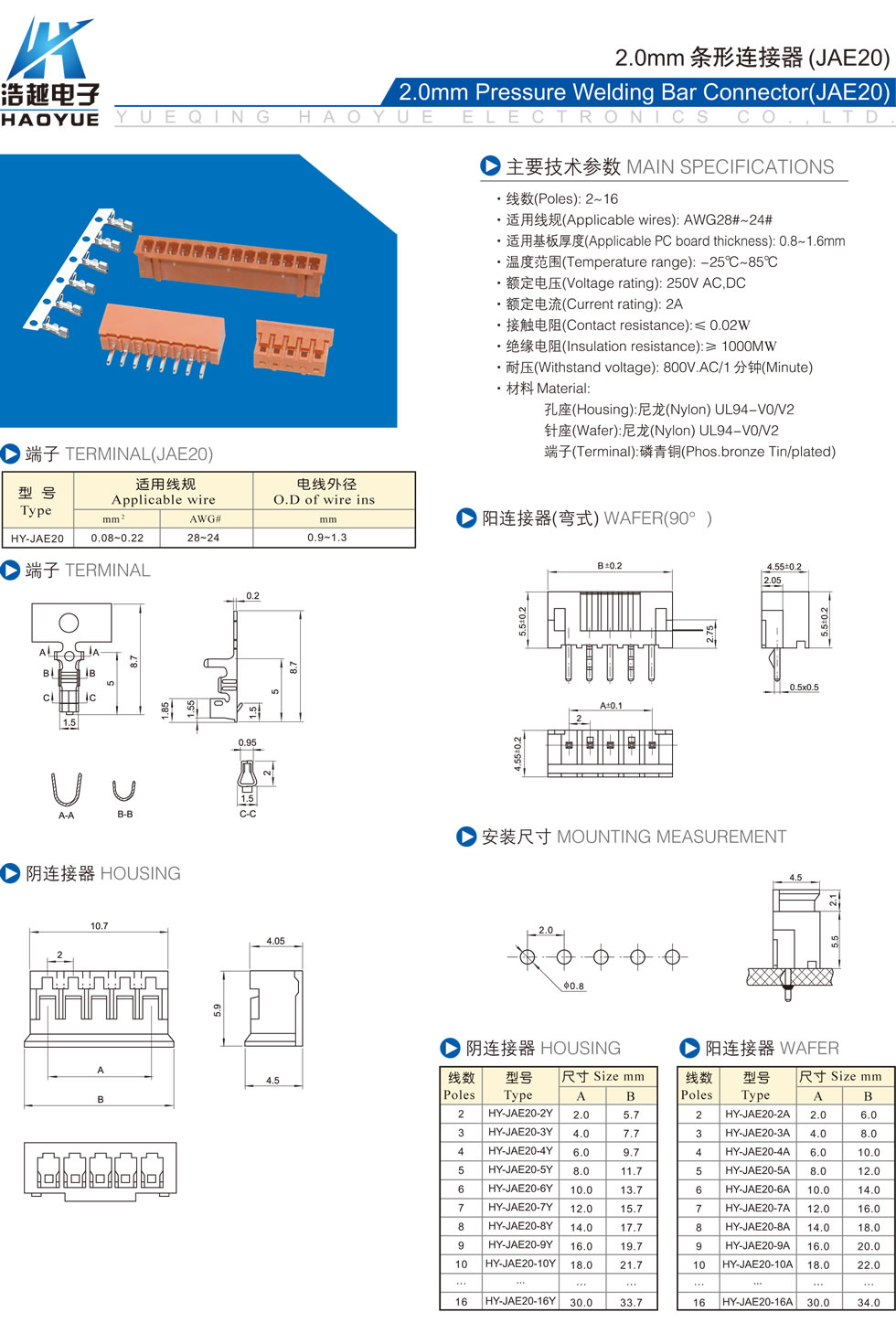 2.0mm条形连接器(JAE20)