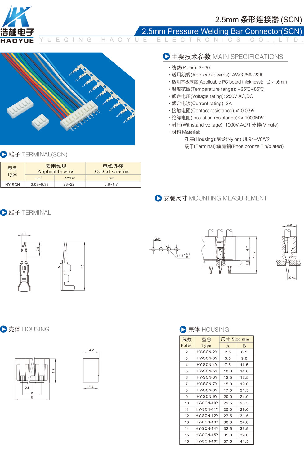 2.5mm条形连接器(SCN)