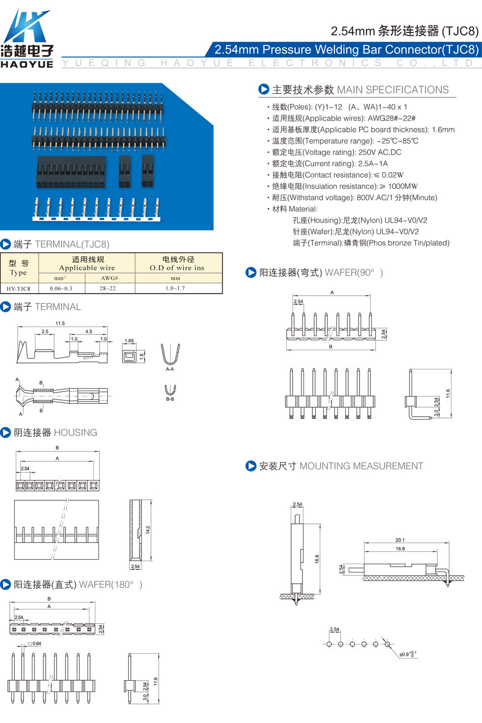 2.54mm条形连接器(TJC8)