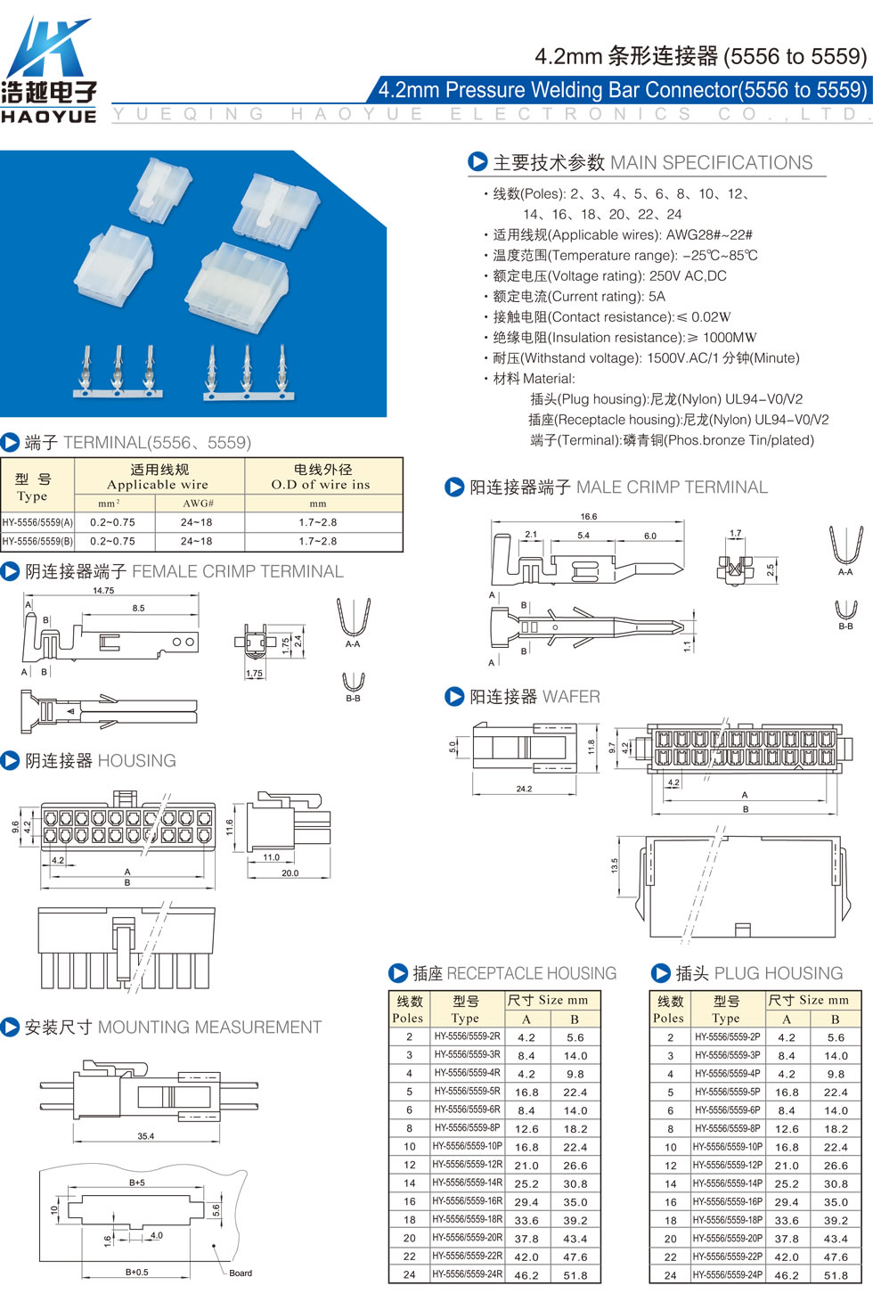 4.2mm条形连接器(5556 to 5559)