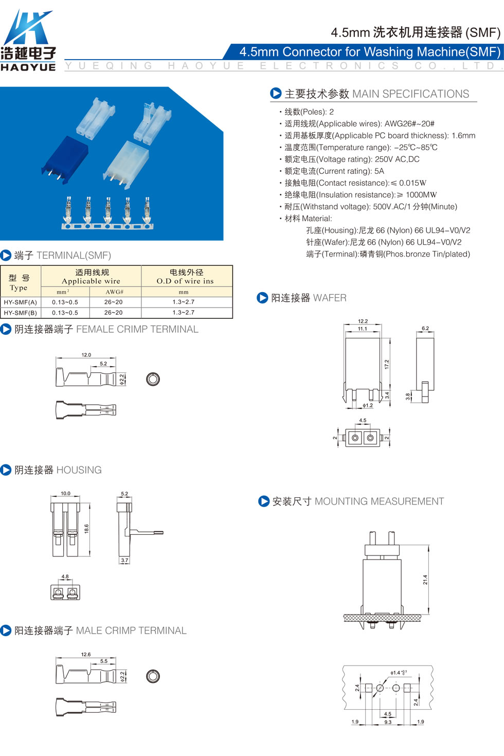 8.0/5.0mm洗衣机用连接器(Cy-X201/35108)