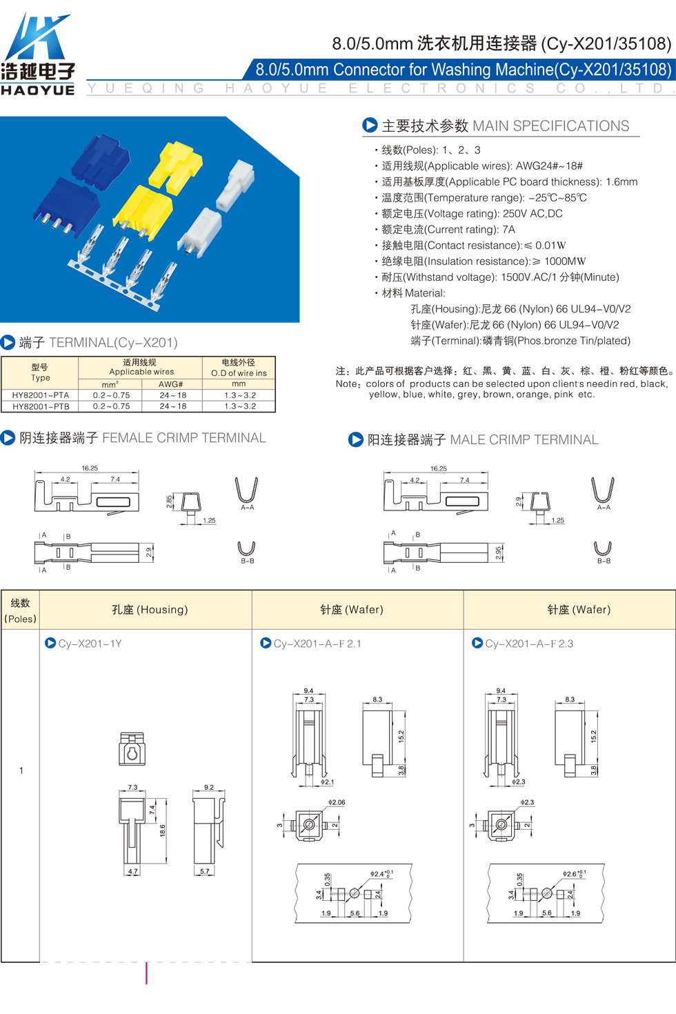 8.0/5.0mm洗衣机用连接器(Cy-X201/35108)